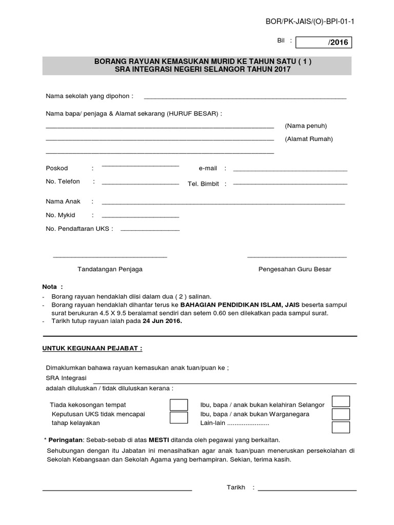 PPH: Permohonan Kemasukan Murid Tahun 1 SRIH JB Sesi 2021 ... from hidayah.edu.my Berikut adalah perkara yang perlu dibuat oleh ibubapa untuk pendaftaran kemasukan tahun 1 2021 Perhatian buat ibu bapa atau penjaga yang membuat pendaftaran kemasukan anak ke murid tahun satu (1) ambilan 2020. Pentaksiran baharu kemasukan sekolah khusus tahun 2021. Darul tahfiz ummul qura jalan kebun. Katanya setiap tahun, lebih 500 permohonan kemasukan ke srai diterima tapi kuota kemasukan terhad kepada 120 murid sahaja. Pendaftaran murid tahun satu (1) boleh dibuat seperti berikut pihak sekolah akan menghubungi tuan atau menghantar email dalam masa 7 hari bekerja untuk menentukan tarikh ujian penilaian kemasukan pelajar (upkp). Permohonan dibuka bermula 27 ogos sehingga 27 september 2019. Murid tahun 6 bersekolah di sekolah kebangsaan (sk) dan berdaftar dalam aplikasi pangkalan data murid (apdm) kpm pada tahun 2020.